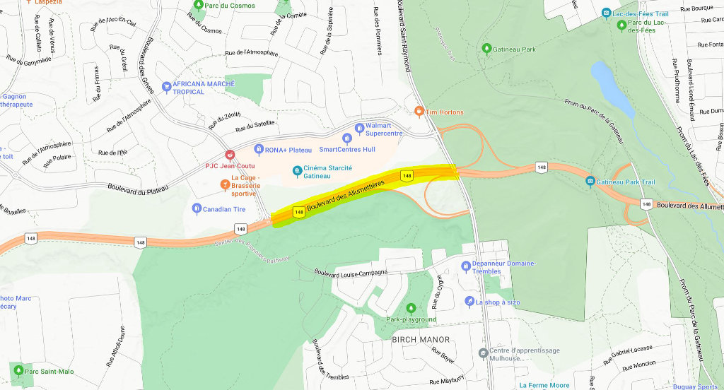 Du 12 avril à 20 h au 13 avril à 5 h (dans la nuit du dimanche au lundi), une voie sera fermée entre les boulevards des Grives et Saint-Raymond en raison de travaux d’entretien. La bretelle Ouest sera complètement fermée. Un détour via la route 148 Ouest et retour par le boulevard Saint-Raymond est prévu.