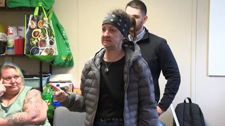 « Par respect et dignité pour la vie humaine, tous les usagers ici ont le droit de respirer la même air que tout le monde, de boire de l’eau propre, de se laver, merde. Scusez. D’avoir des toilettes où est-ce que c’est qu’on peut être en intimité, s’il vous plaît. Je suis obligée de coucher dans mon auto, crisse. Ça n’a pas d’allure. »