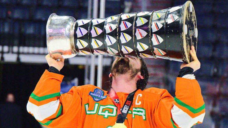 Conor Frenette, embrassant le trophée.